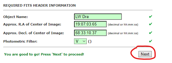 I can plate solve my images with different sofware but I want to evaluate in VPhot and this is to my knowledge not possible if the images have not been platesolved in VPhot during the upload porcess (?). Ans as this doesn’t work I cannot run the photometry.