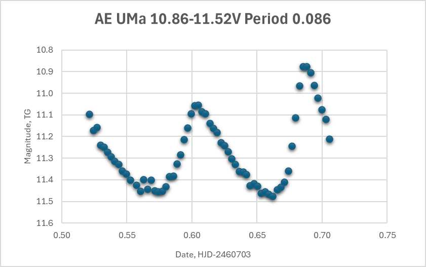 As for the results of photometry, here is some results that I was able to achieve one night on AE UMa: