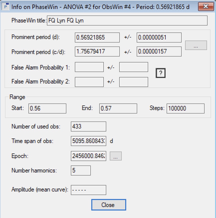 I guess you’re right that the period was not quite accurate. However, in order to get a good result I had to specify the search range to be 0.56 to 0.57 and upped the steps to be 10,000. It did then come up with 0.56921865 which yielded this phase plot using the ANOVA option.