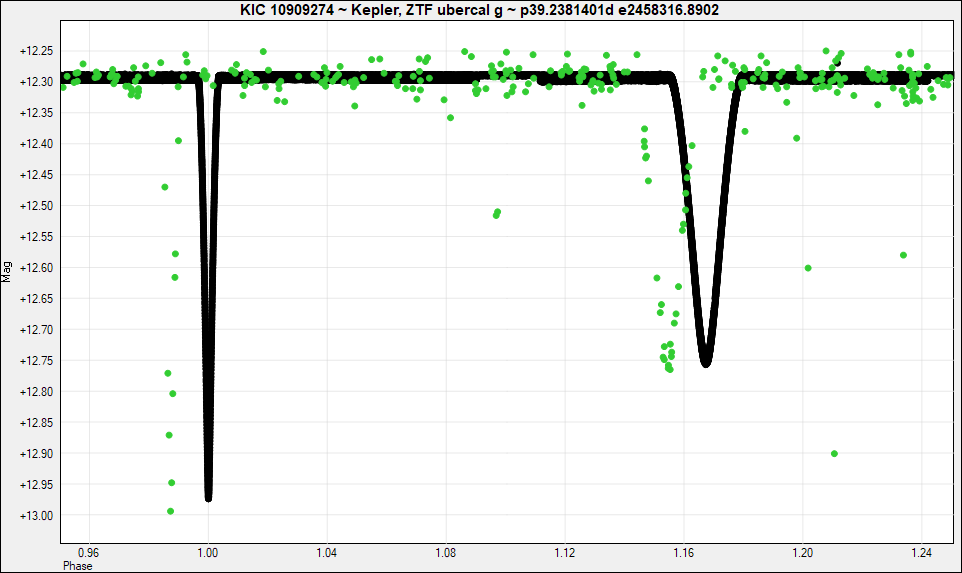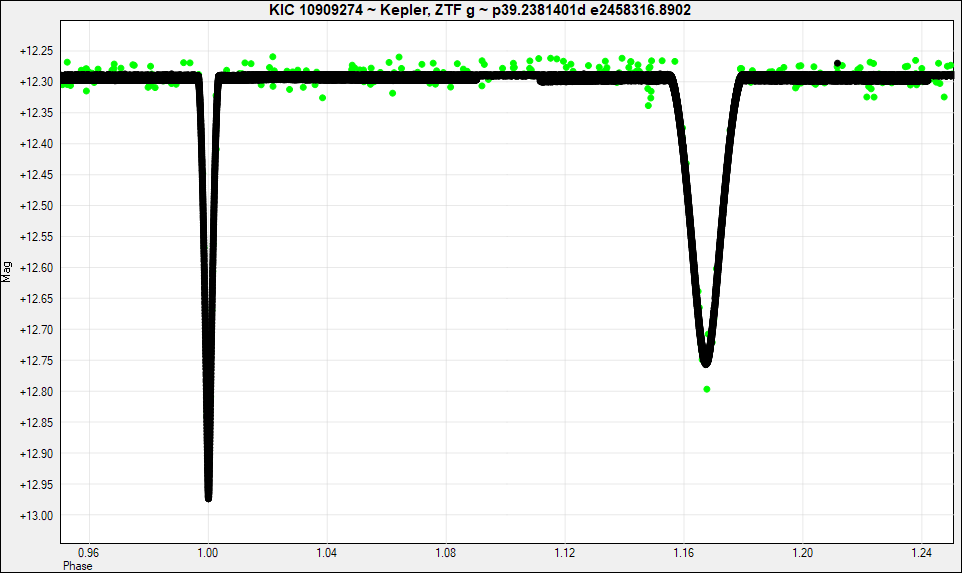 Interesting very eccentric EA KID 10909274 has a period 39.2381401d, wich gives good agreement between ZTF and Kepler data.